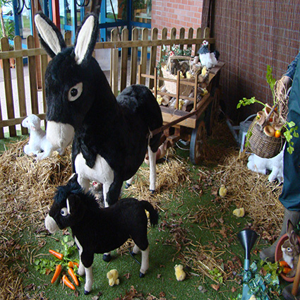 Nos Animaux de la Ferme Automates sont proposés mis en scène dans des décors de pâques où à l’ambiance de ferme.